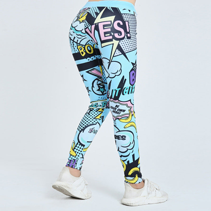 Cross Border New European And American Cartoon Pattern English Alphabet Digital Printing Yoga Tight Thin Bottomed Capris
