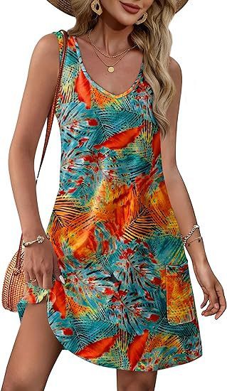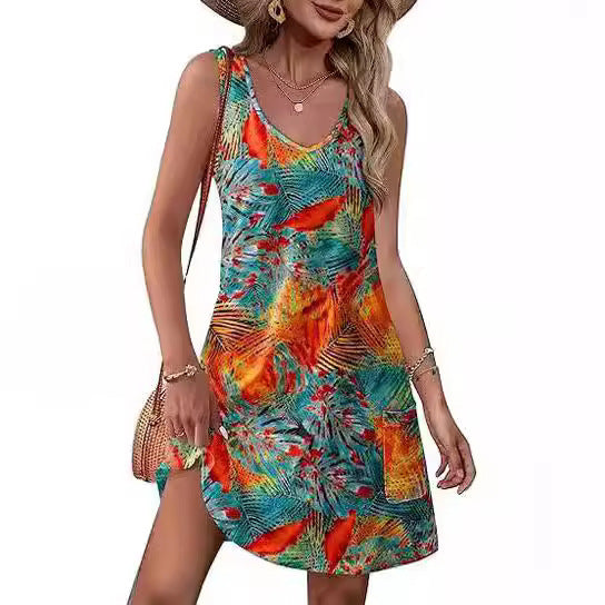 Women's Beach Vacation Sleeveless V-neck Loose Dress