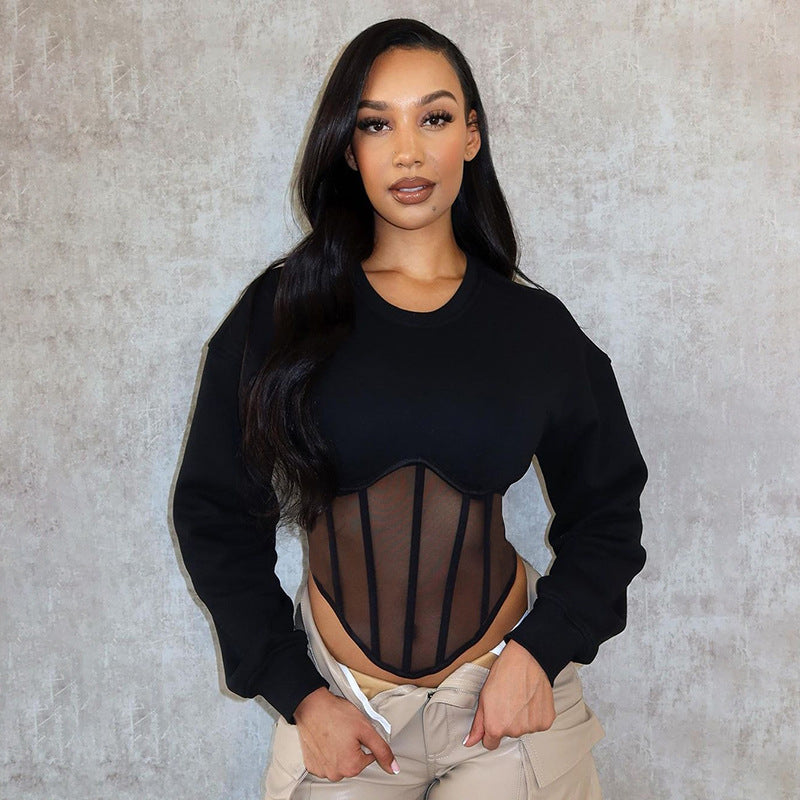 Women's Autumn Round Neck Loose Long Sleeves Waist-tight Sweater