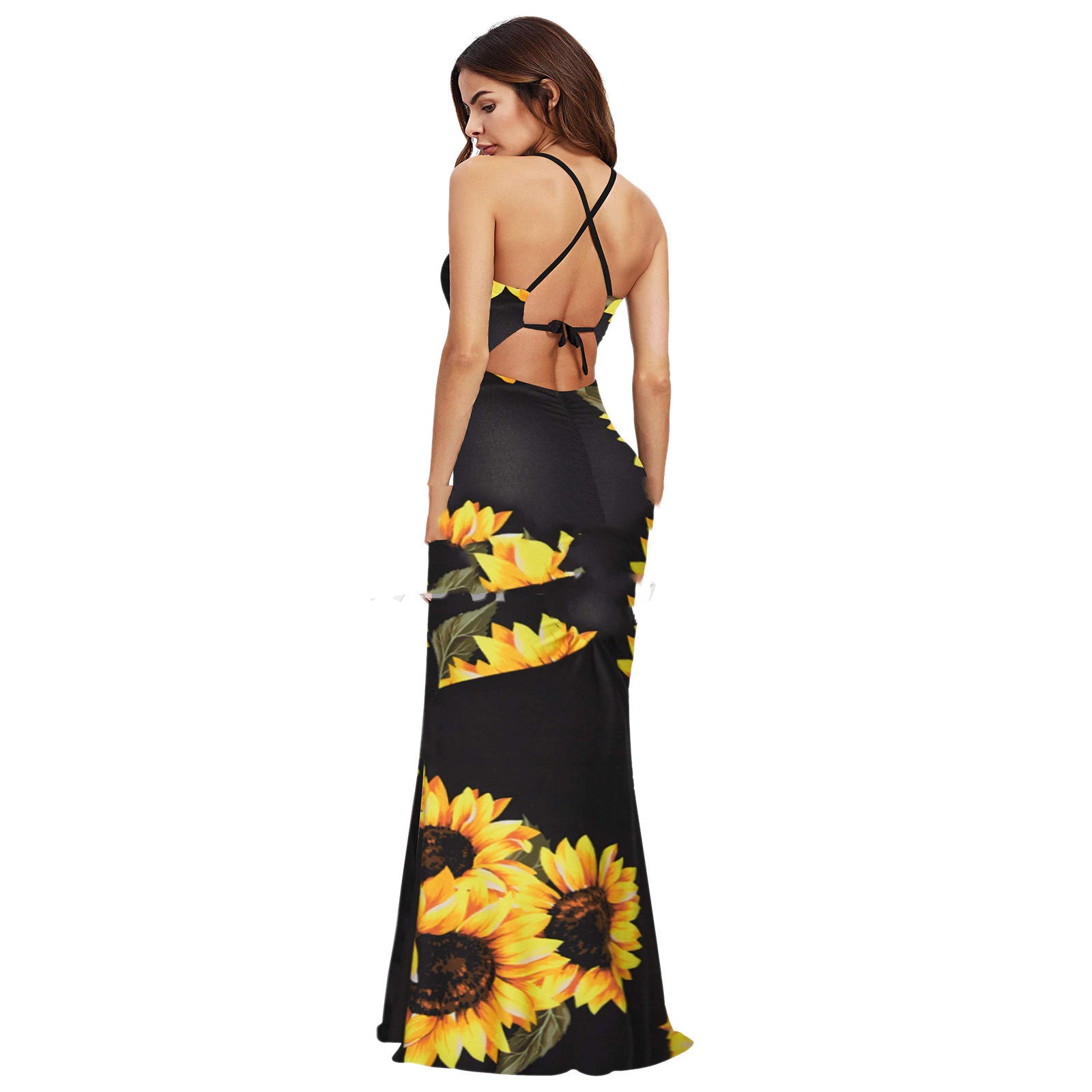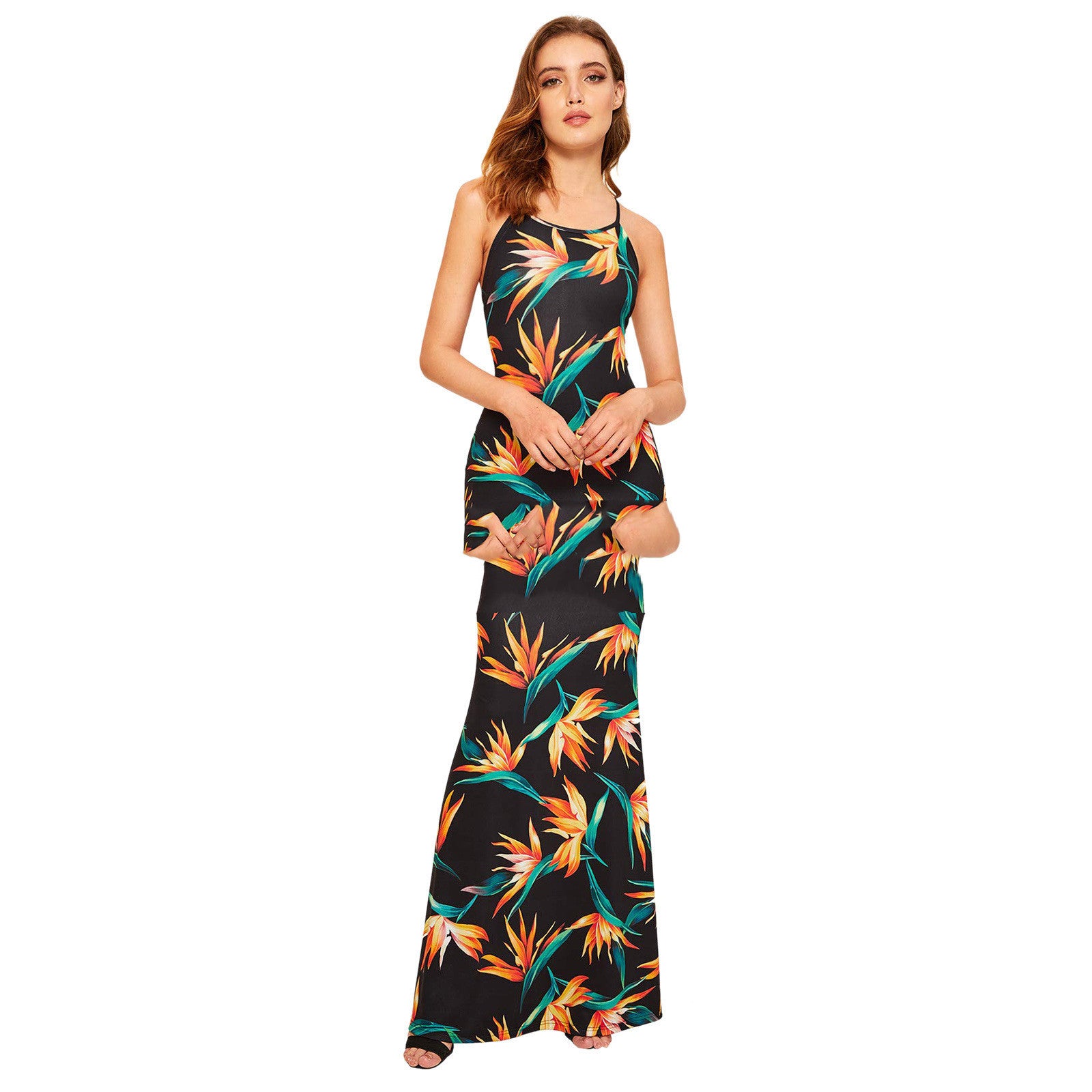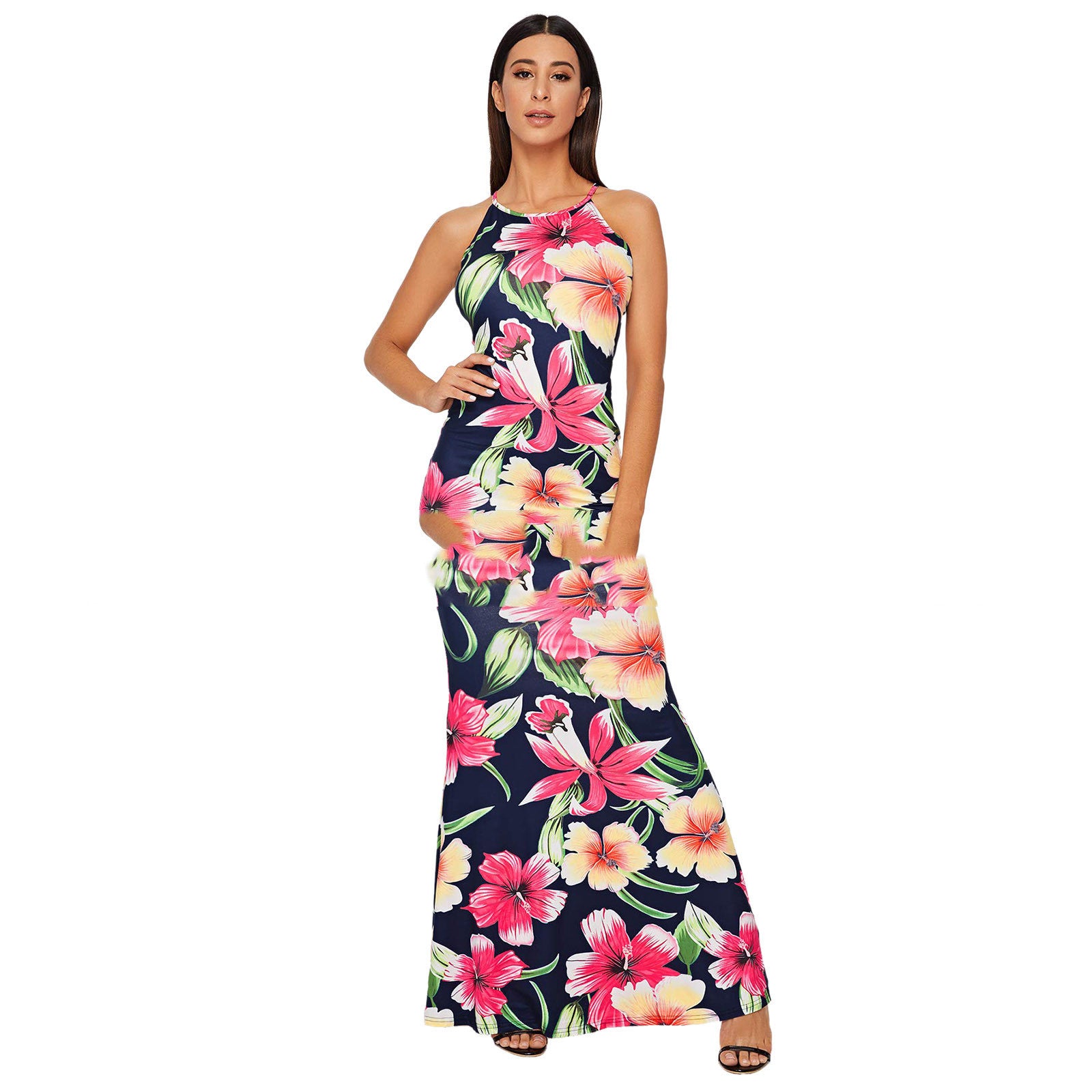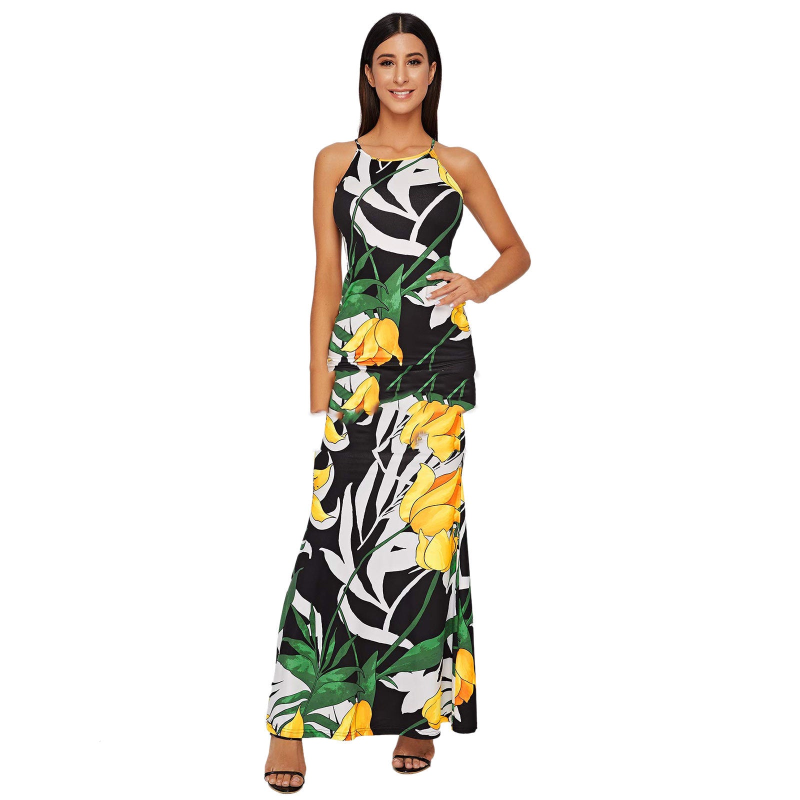 Women's Corset Milk Silk Maxi Suspender Print Dress