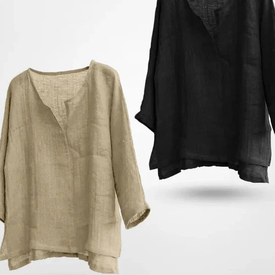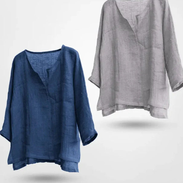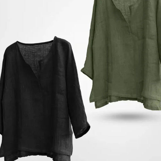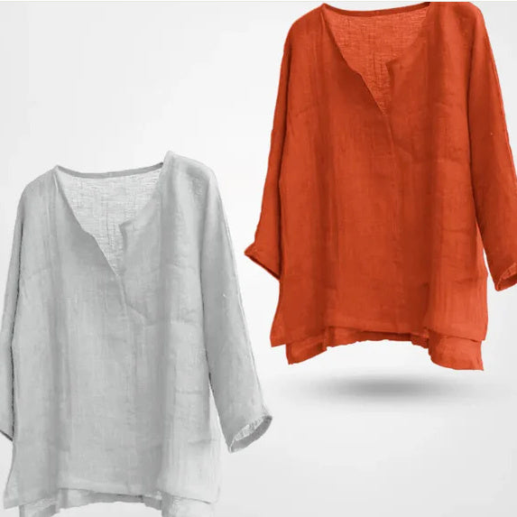 Women's Chinese Cotton And Linen Solid Color Loose Long Sleeves Shirt
