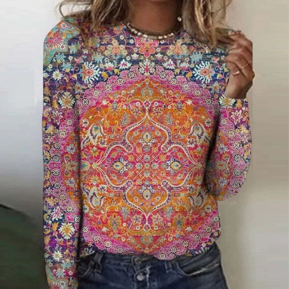 Women's Clothes Long Sleeve T-shirt 3D Digital Crew Neck T-shirt Top