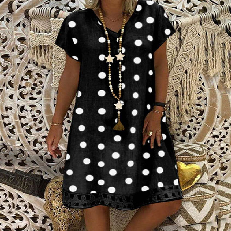 Women's Fashion Polka Dot Short Sleeve V-neck Printed Midi Dress