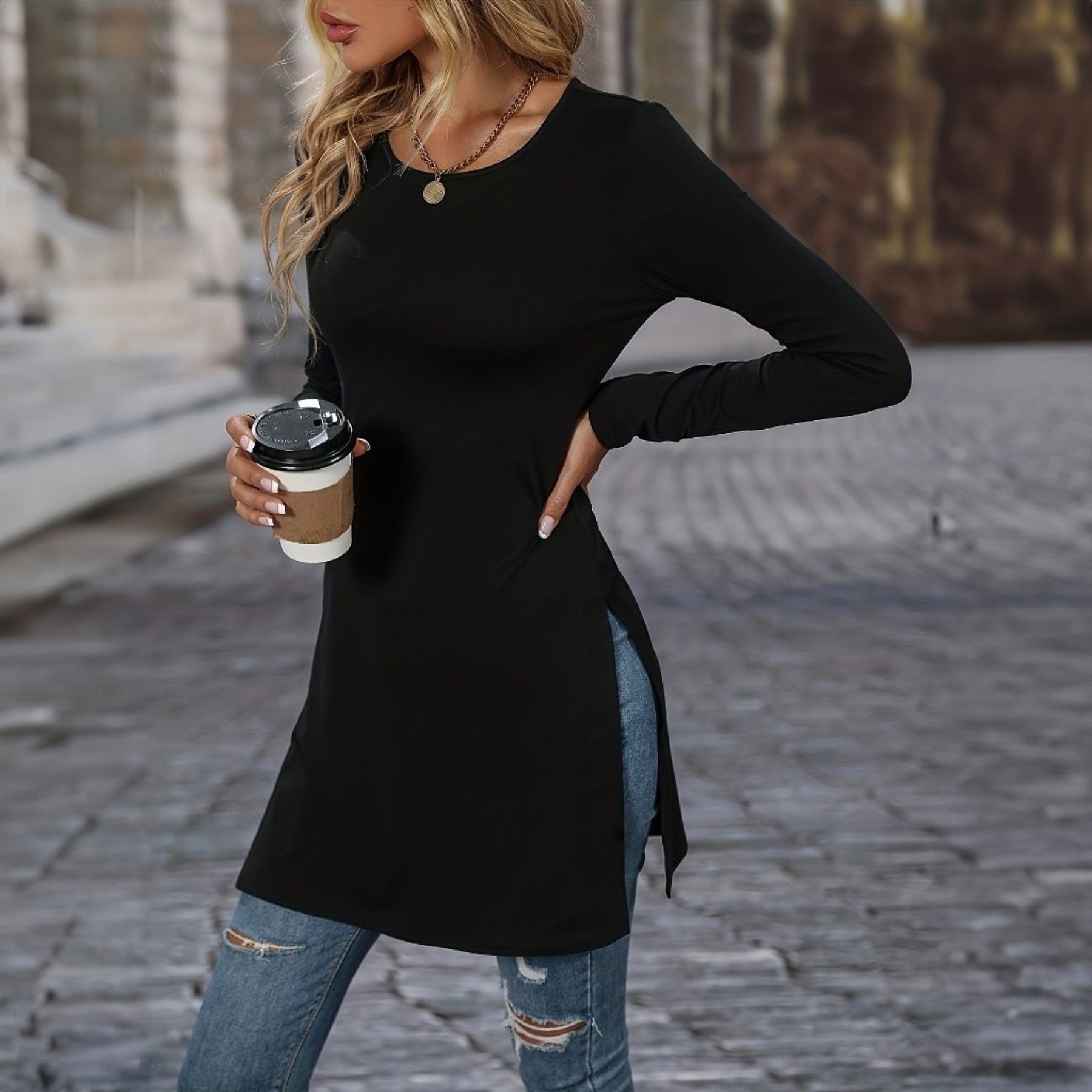 Women's Long Sleeve Slim Fit Slimming Slit Long T-shirt