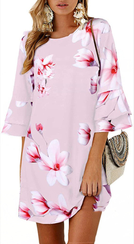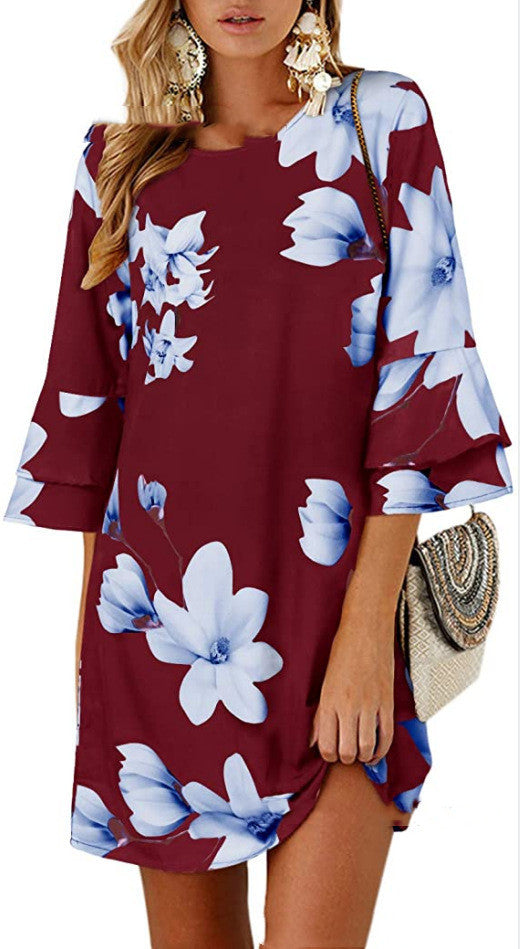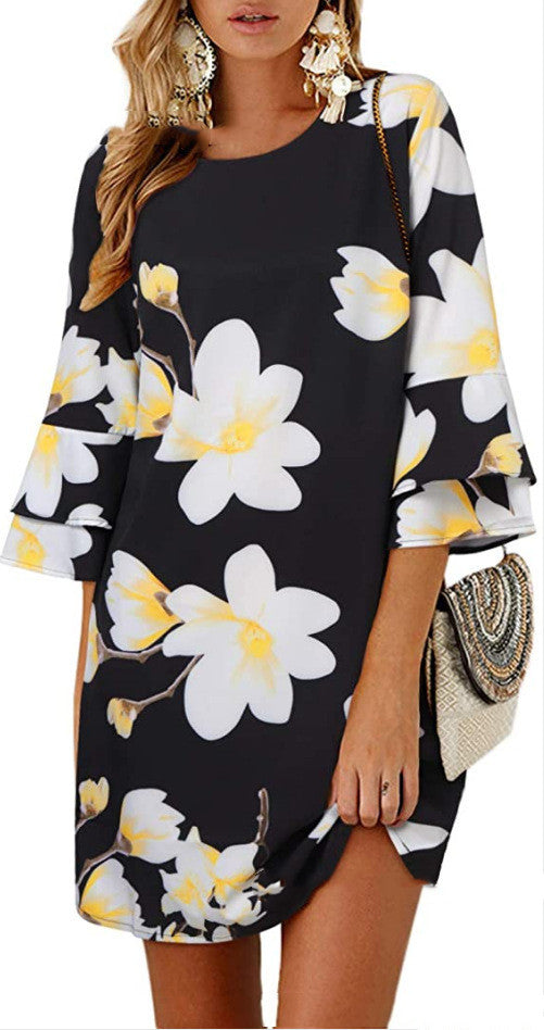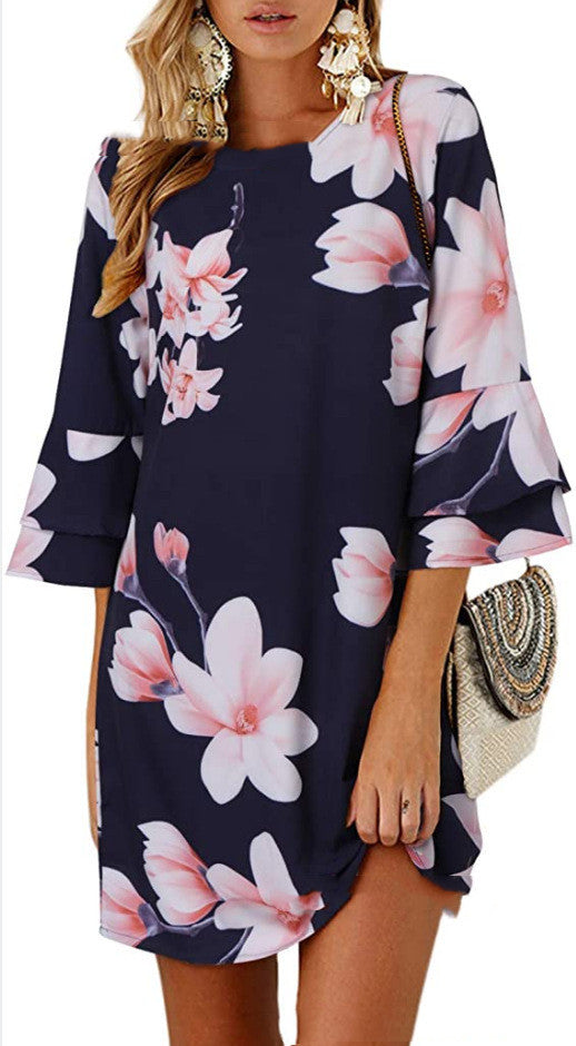 Regular price $32.89 USDSale price $32.89 USD Regular priceUnit price perSale Sold outProduct information: Pattern: Printing Combination form: single piece Skirt length: middle skirt Skirt type: Irregular skirt Collar type: round neck Sleeve length: seven points Main fabric...