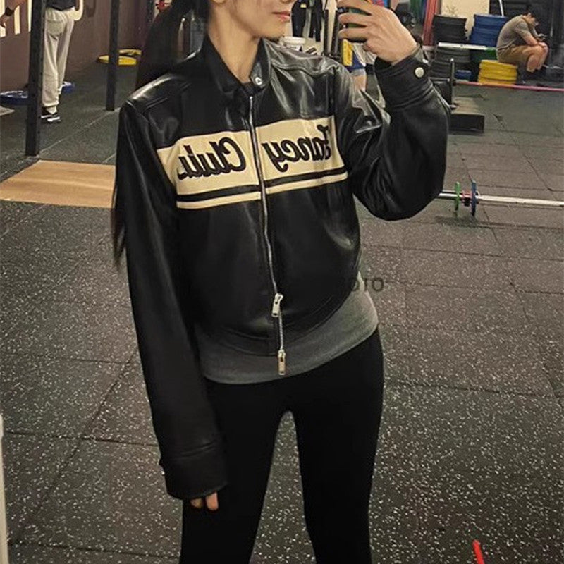 Women's Summer Baseball Uniform Jacket Top Riding Motorcycle Leather Coat