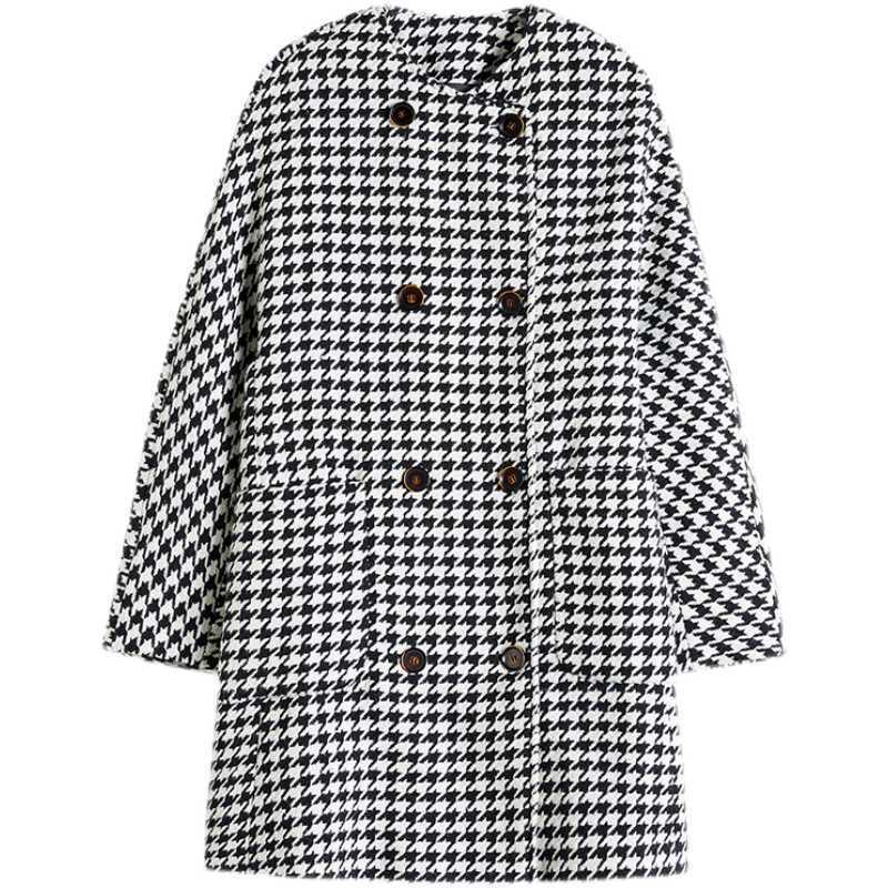 Woolen Plus Size Women's Clothing Houndstooth Coat