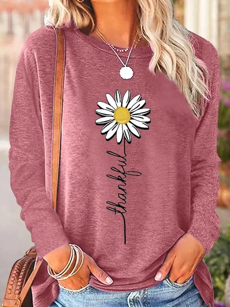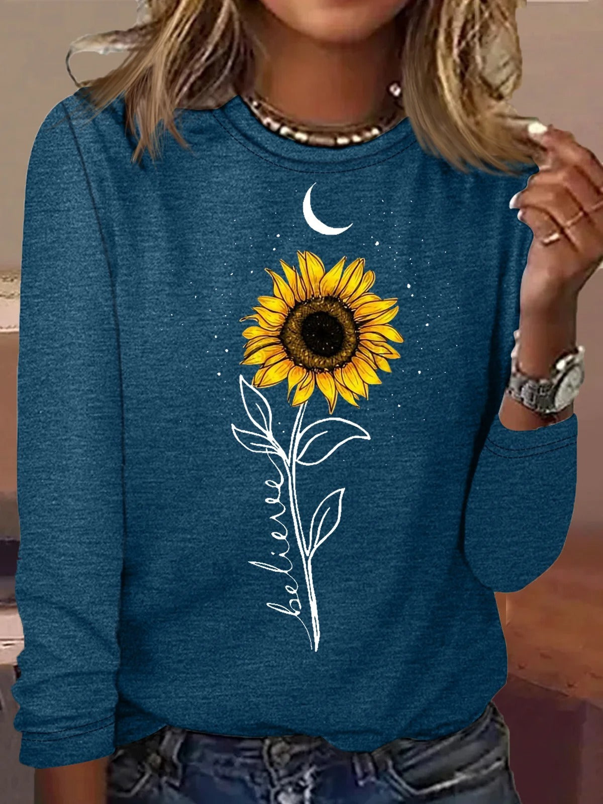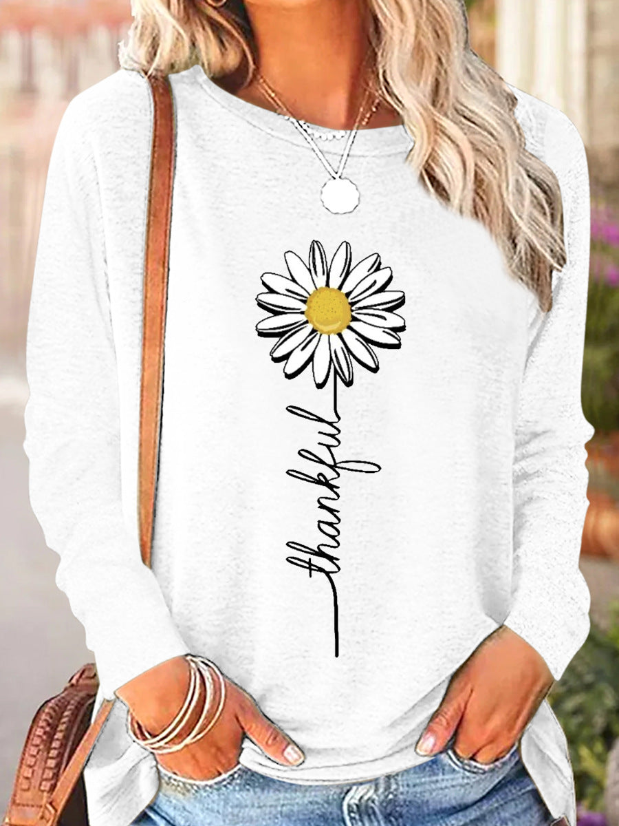 Comfort And Casual Printed Long Sleeve Round Neck T-shirt