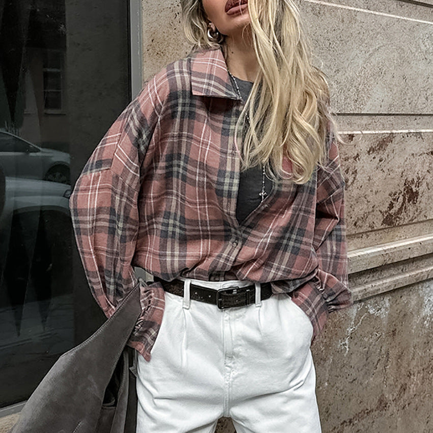American College Style Plaid Shirt Fashionable Outerwear Cotton