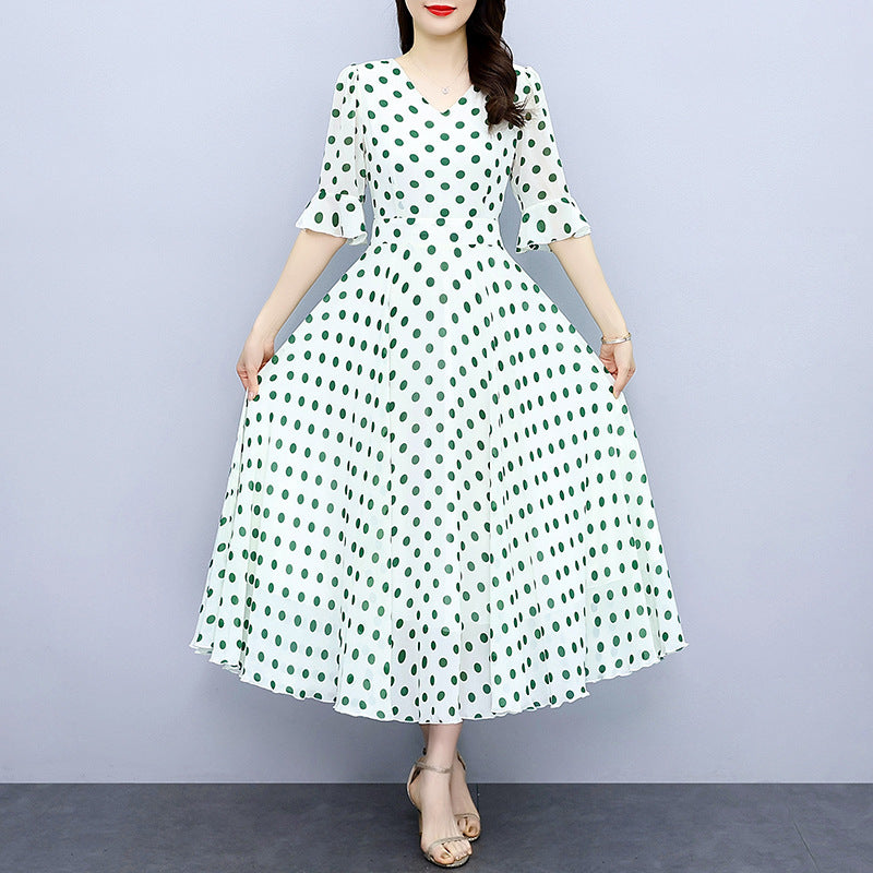 Half Sleeve Polka Dot Expansion Skirt For Vacation Over The Knee Dress