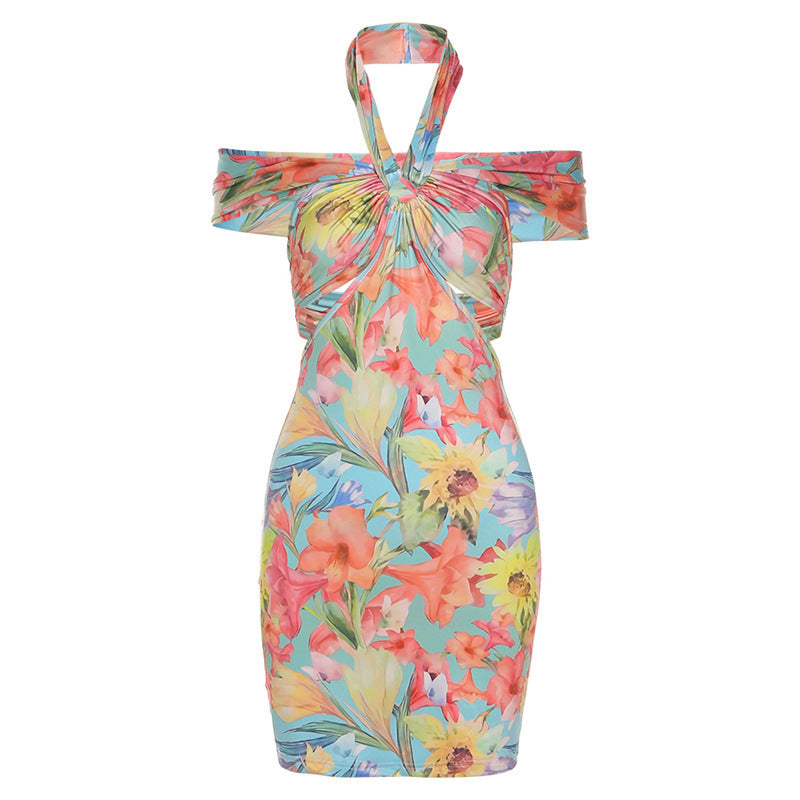Kliou Aesthetic Halter Mini Dress Women Sexy Out Of Shoulder Backless Skinny Bodycon Cross Bandage Vacation Partywear Hot