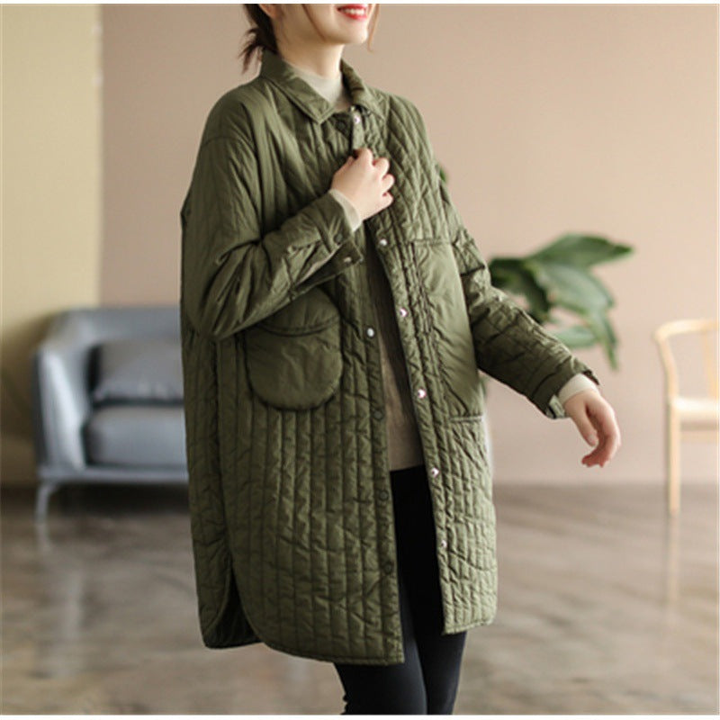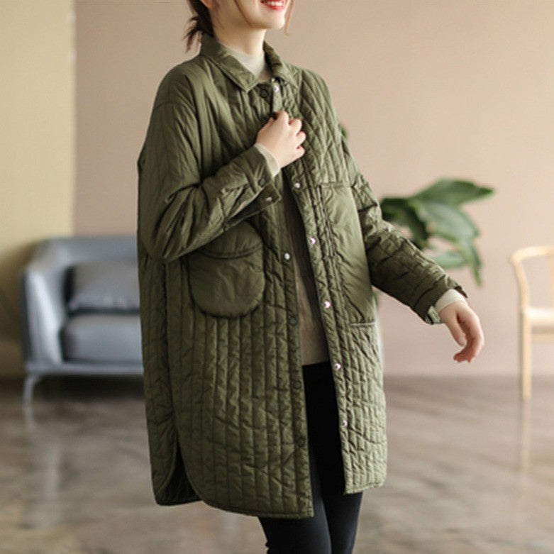 Korean Style Artistic Relaxed-fit Casual Quilted Shirt Coat