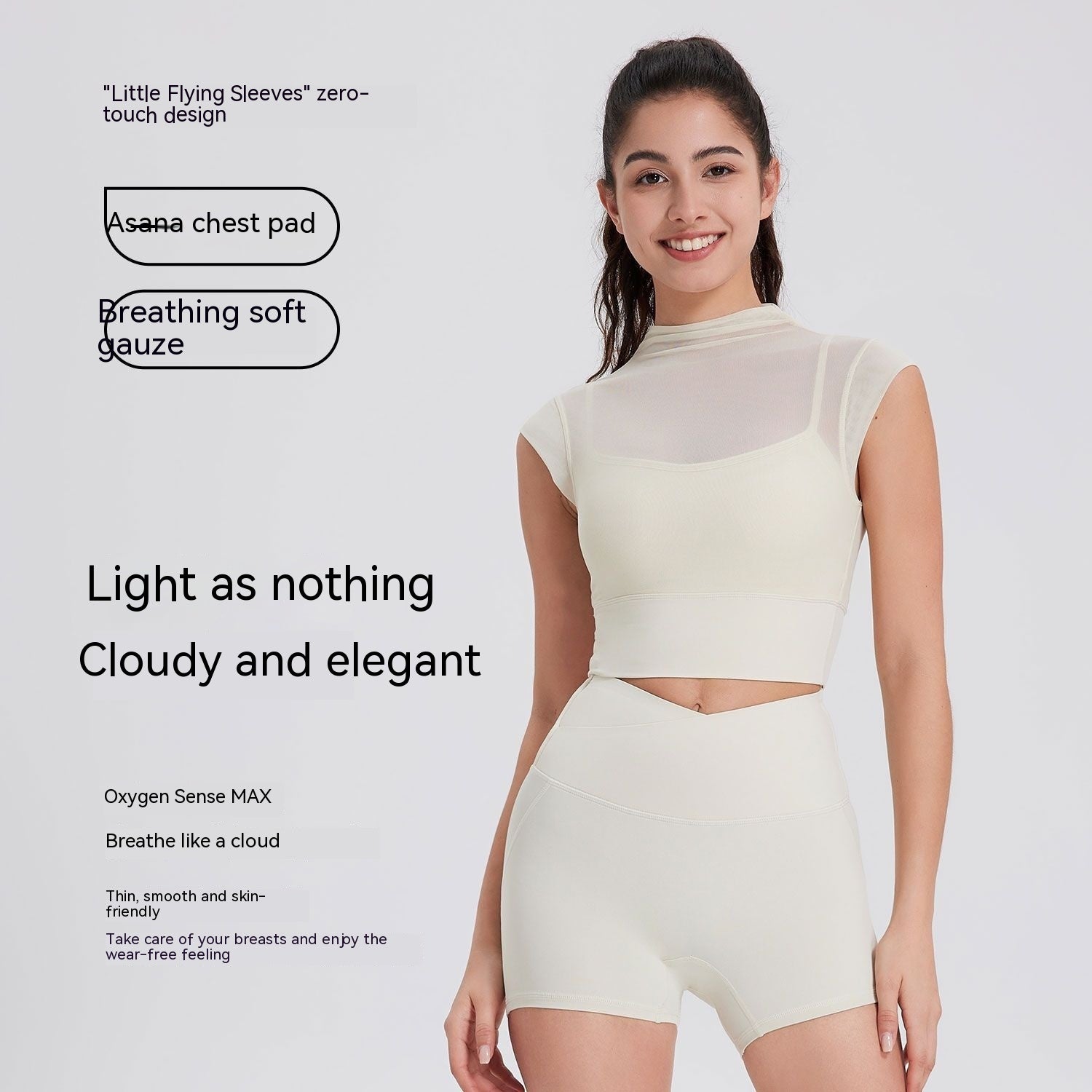 Mesh Yoga Clothes Flounced Sleeve Running Quick-drying Sports Bra With Chest Pad