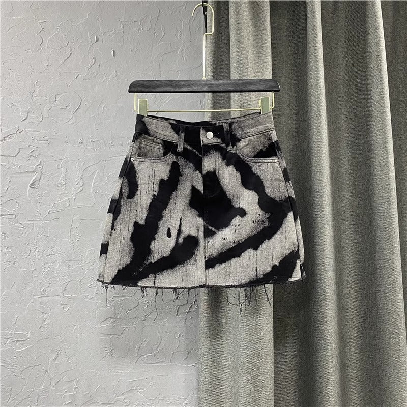 Summer High Waist Slim Personalized Pattern Denim Skirt
