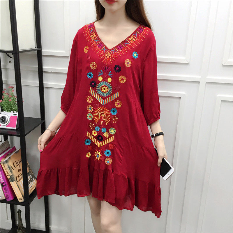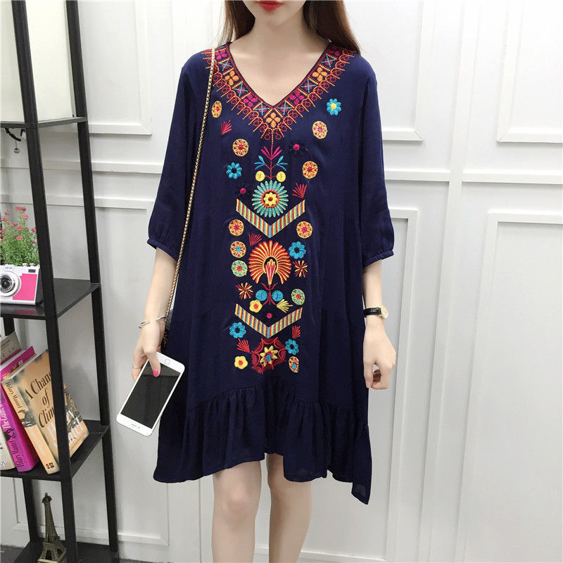 Regular price $34.52 USDSale price $34.52 USD Regular priceUnit price perSale Sold outProduct information: Skirt length: middle skirt Skirt type: A-line skirt Collar type: round neck Sleeve type: conventional sleeve Sleeve length: Seven points Waist type: loose waist...