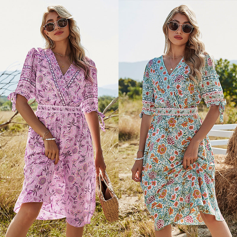 Regular price $35.91 USDSale price $35.91 USD Regular priceUnit price perSale Sold outProduct information: Style: Casual Pattern: Floral Combination form: single piece Skirt length: mid-length skirt Skirt type: A-line skirt Collar type: V-neck Sleeve length: short sleeve Waist...