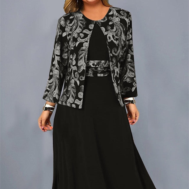 Women's Fashionable Printed Sleeveless Dress Short Coat Suit
