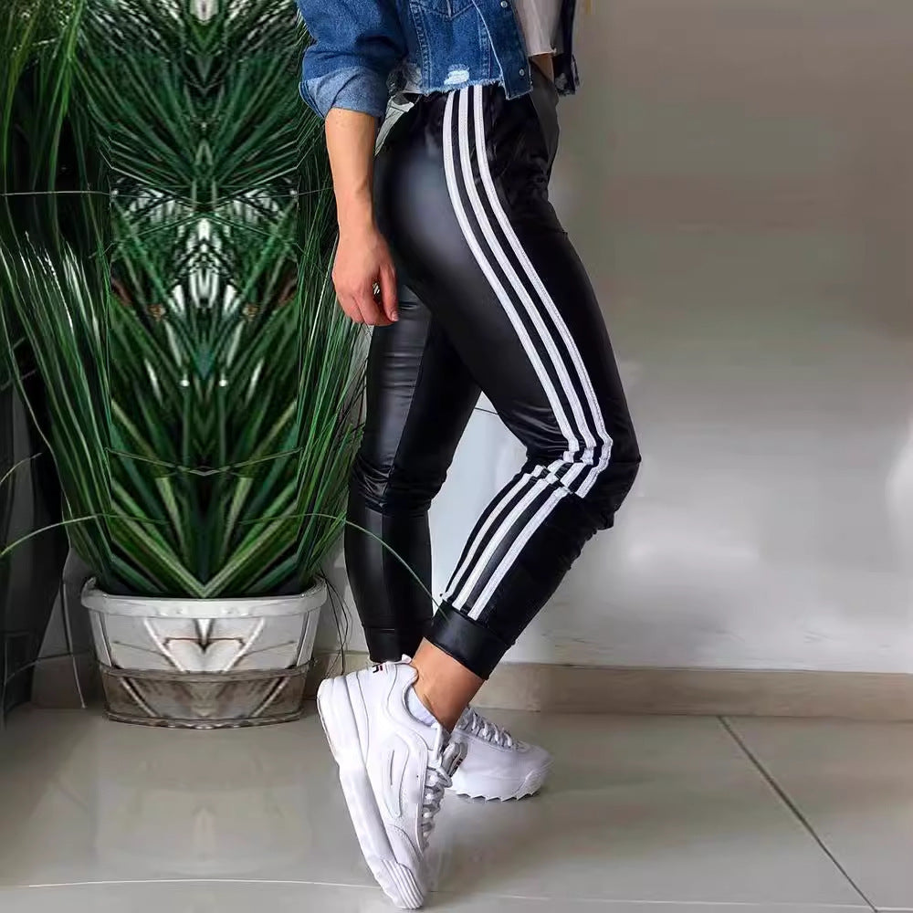 Women's Fashion New PU Side Ribbon Stitching Casual Trousers