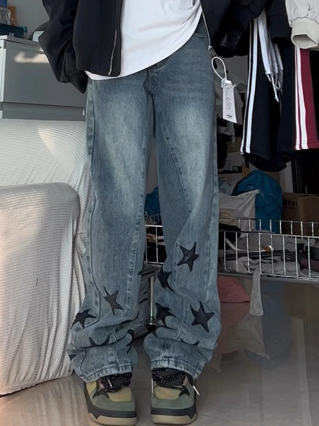 Large Size High Street Vibe Style Jeans Women's Retro Washed High Waist