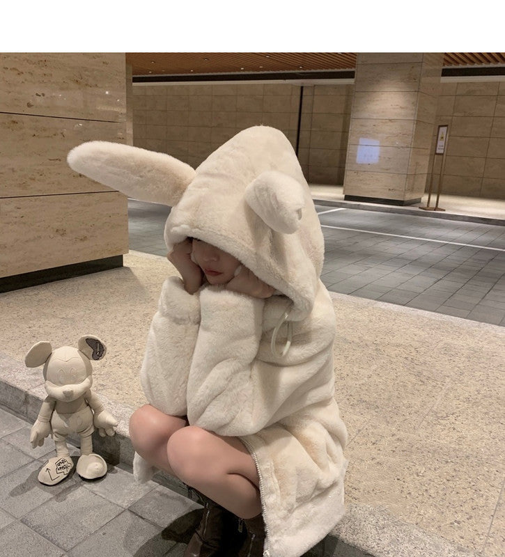 Moving Rabbit Ears Imitated Rabbit Fur Coat Female Lamb Hair