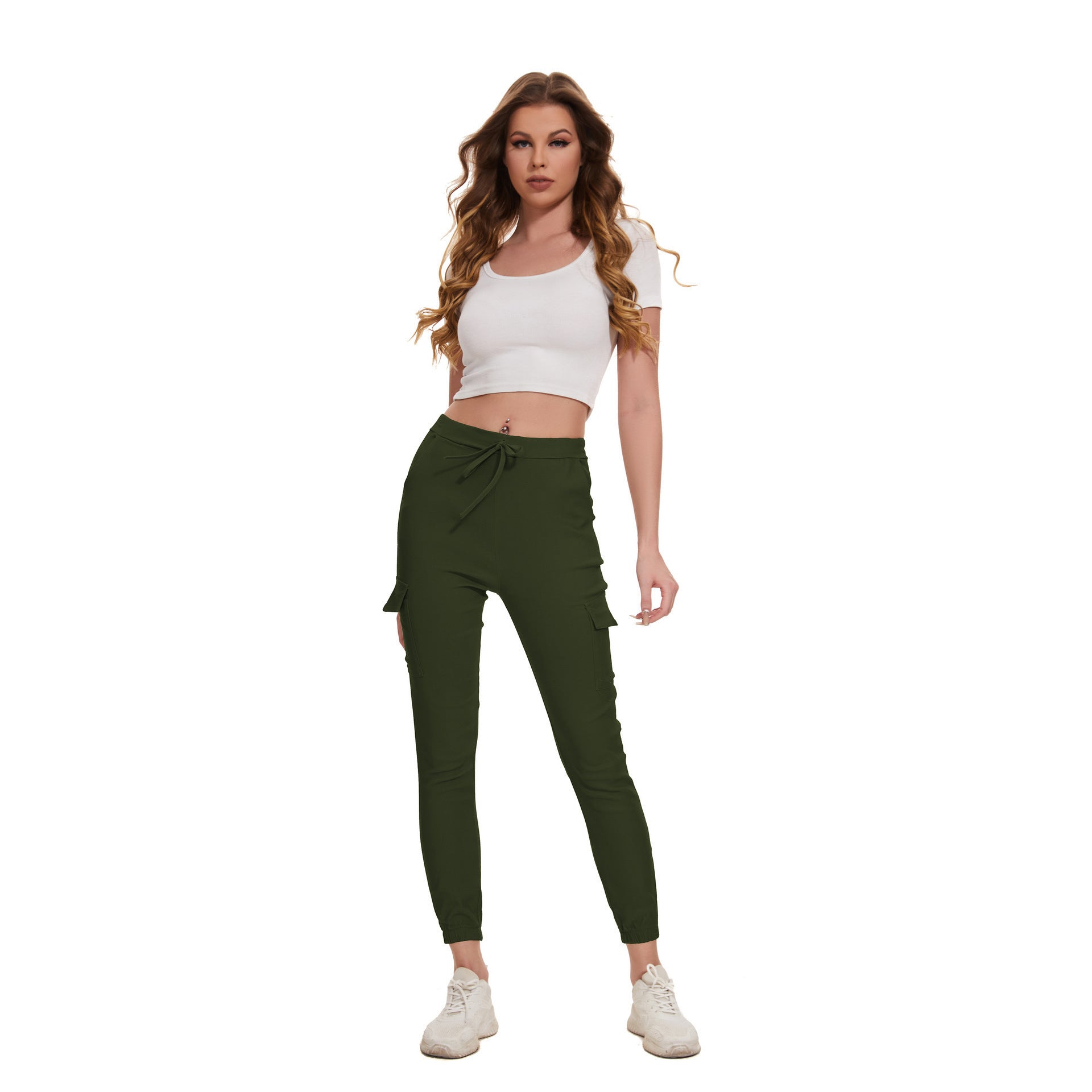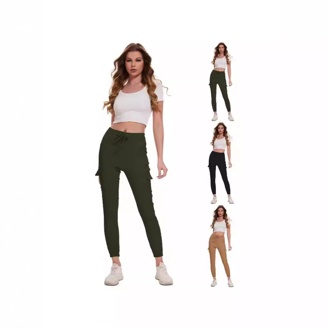 Multi-pocket Work Elegant Casual Elastic Waist Lace Up Pants