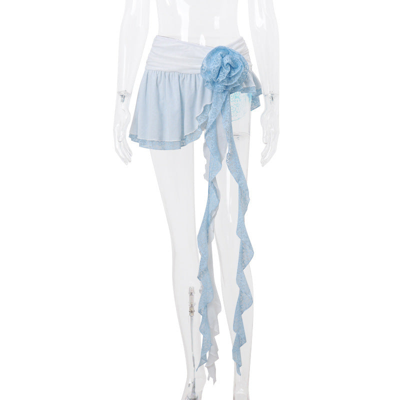 Ballet Style Flower Decorative Contrast Color Ultra Short Slimming Lotus Leaf Skirt