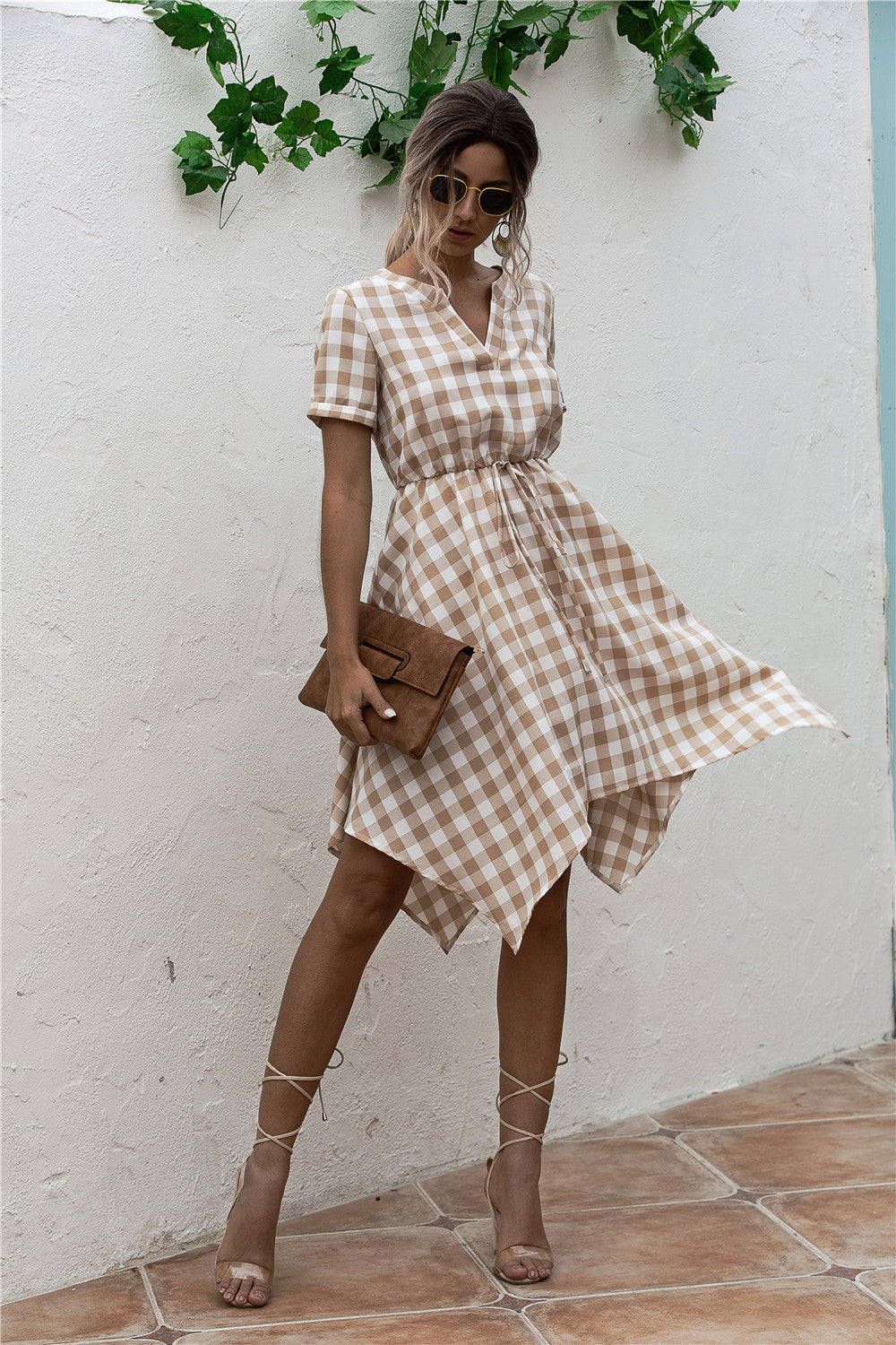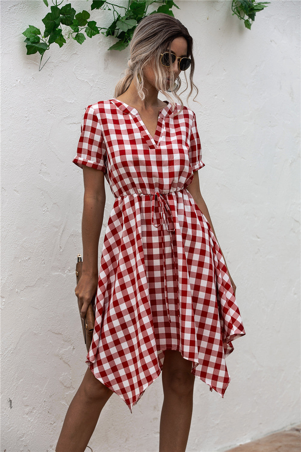 Original Design V-Neck Plaid Irregular Dress