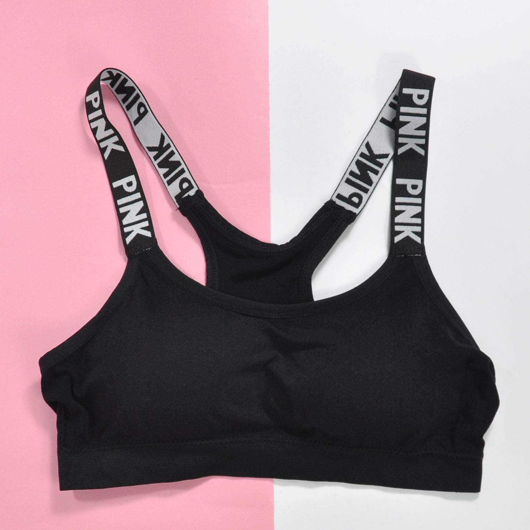 Open-back striped sports bra