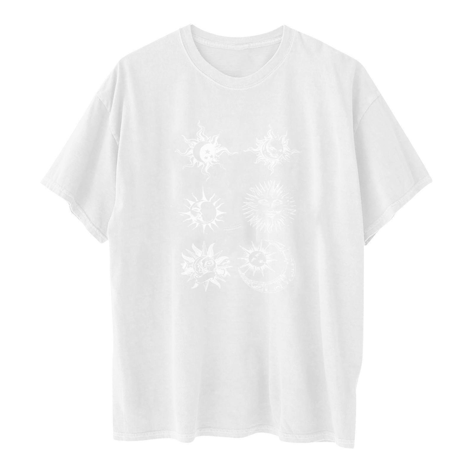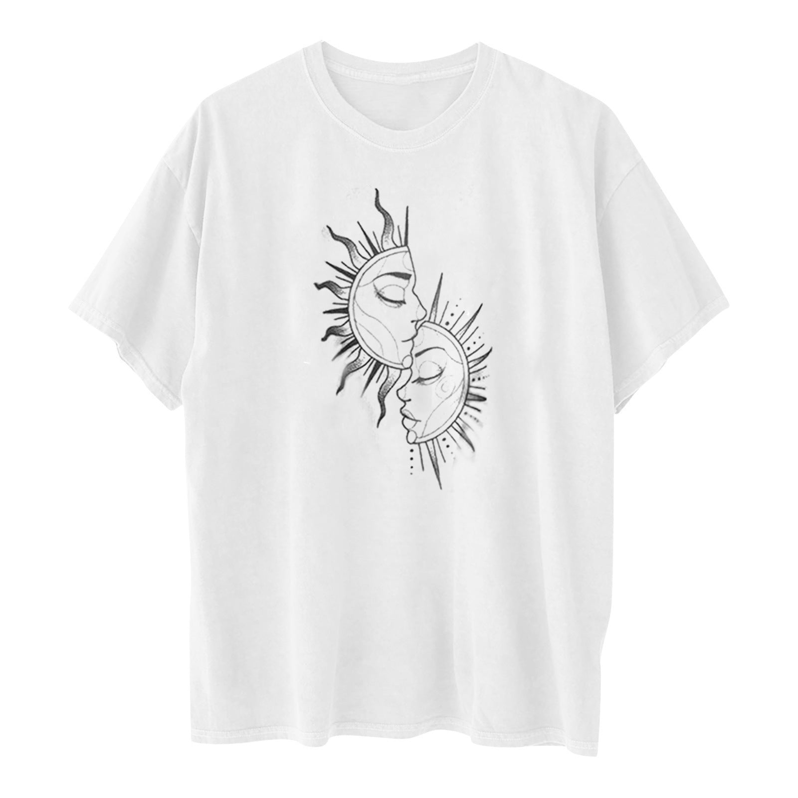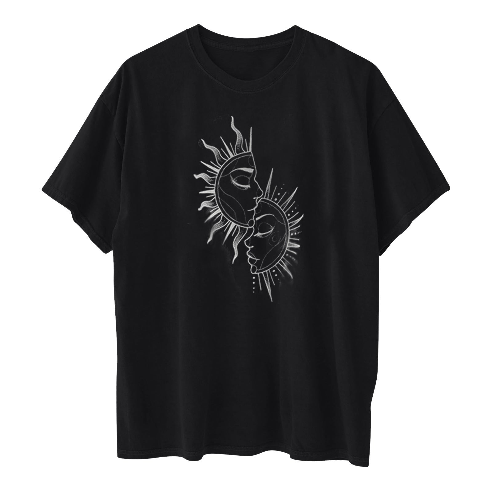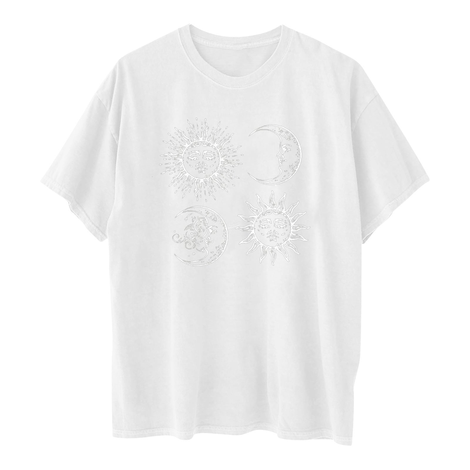 Printed Round Neck Short Sleeve Sun Moon Sun Moon Printed Top Women's T-shirt