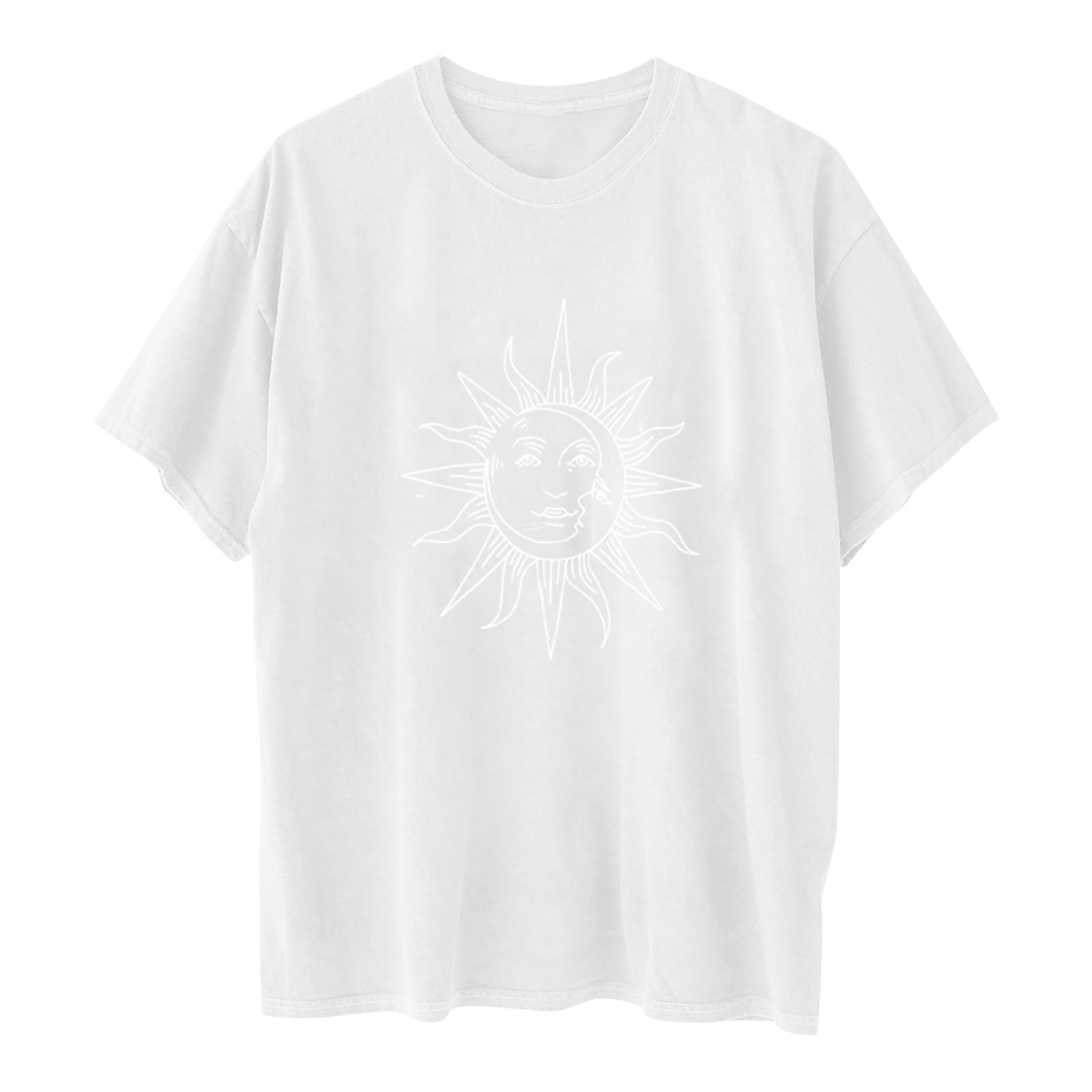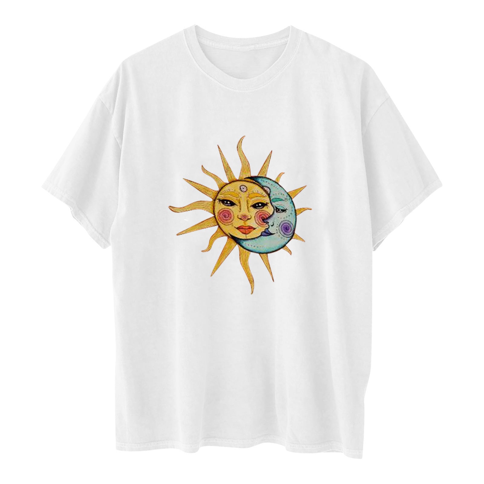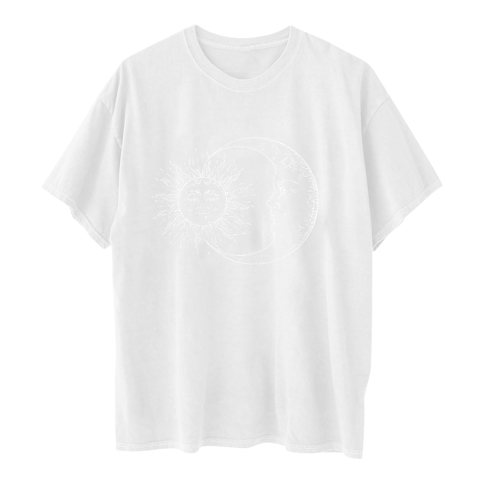 Printed Round Neck Short Sleeve Sun Moon Sun Moon Printed Top Women's T-shirt