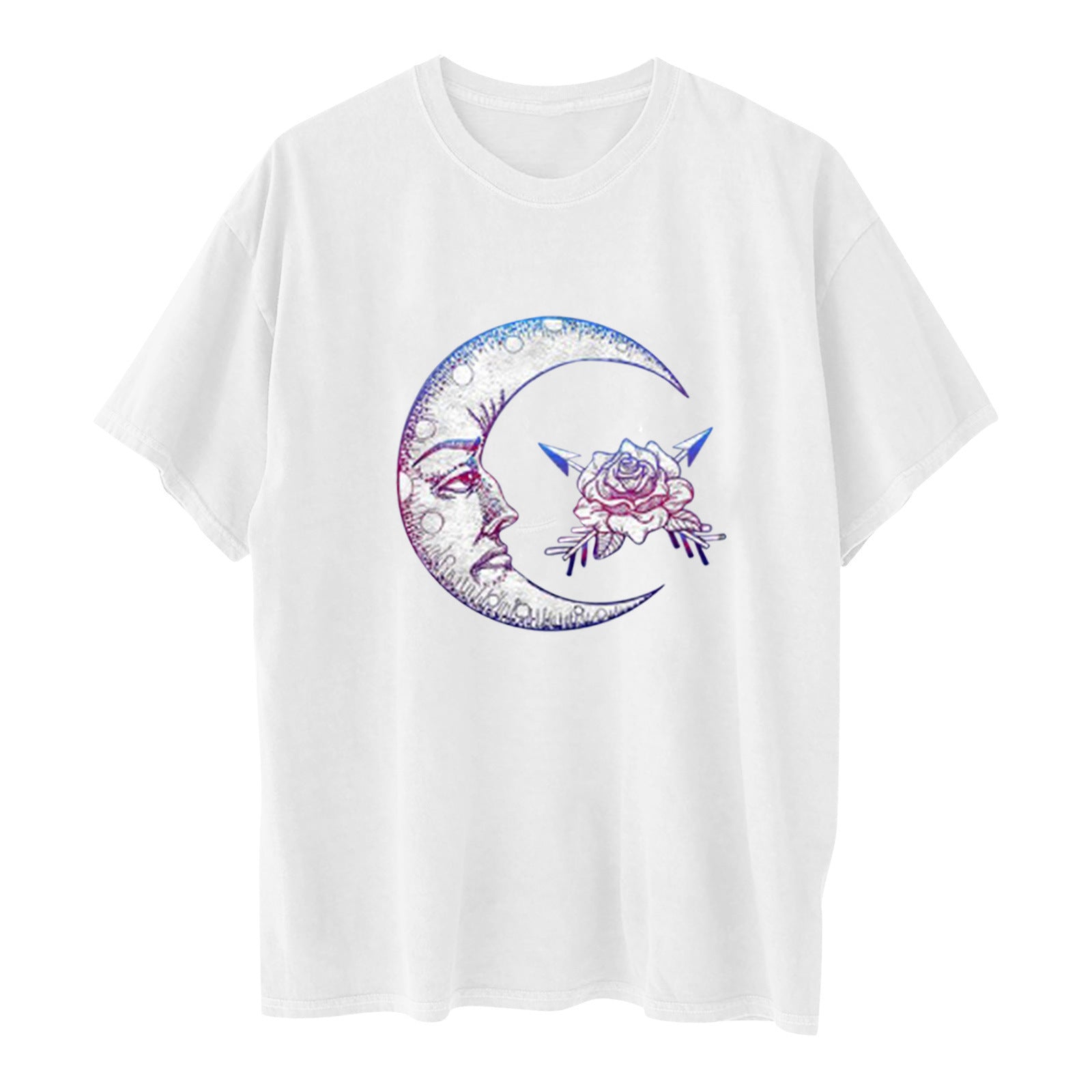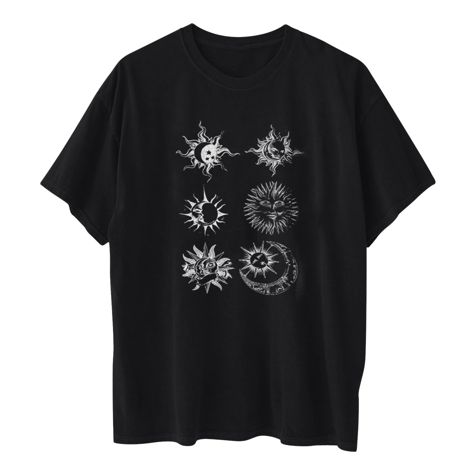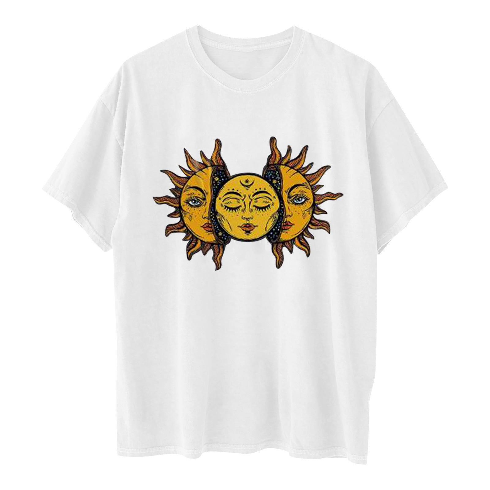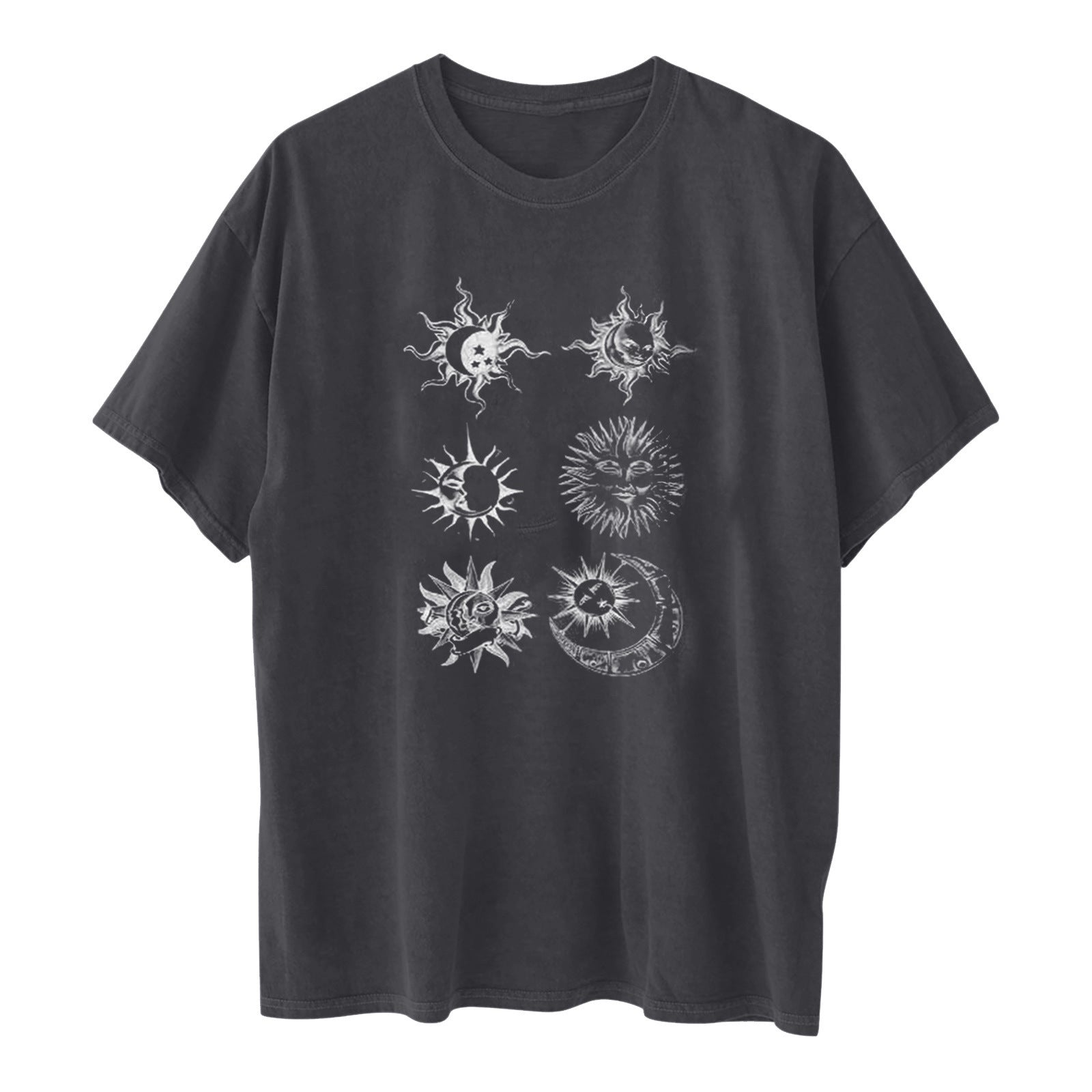 Printed Round Neck Short Sleeve Sun Moon Sun Moon Printed Top Women's T-shirt
