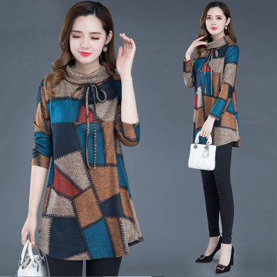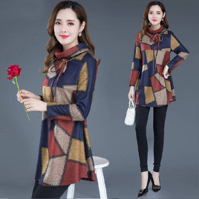 Retro Loose Round Neck Bottom Skirt Printed Midi Skirt