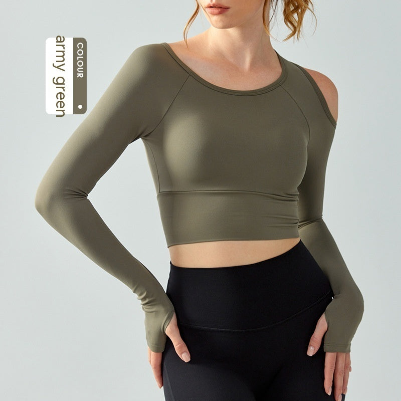 Round Neck Yoga Clothes Long Sleeve Women's Semi-fixed Cup Tight Top