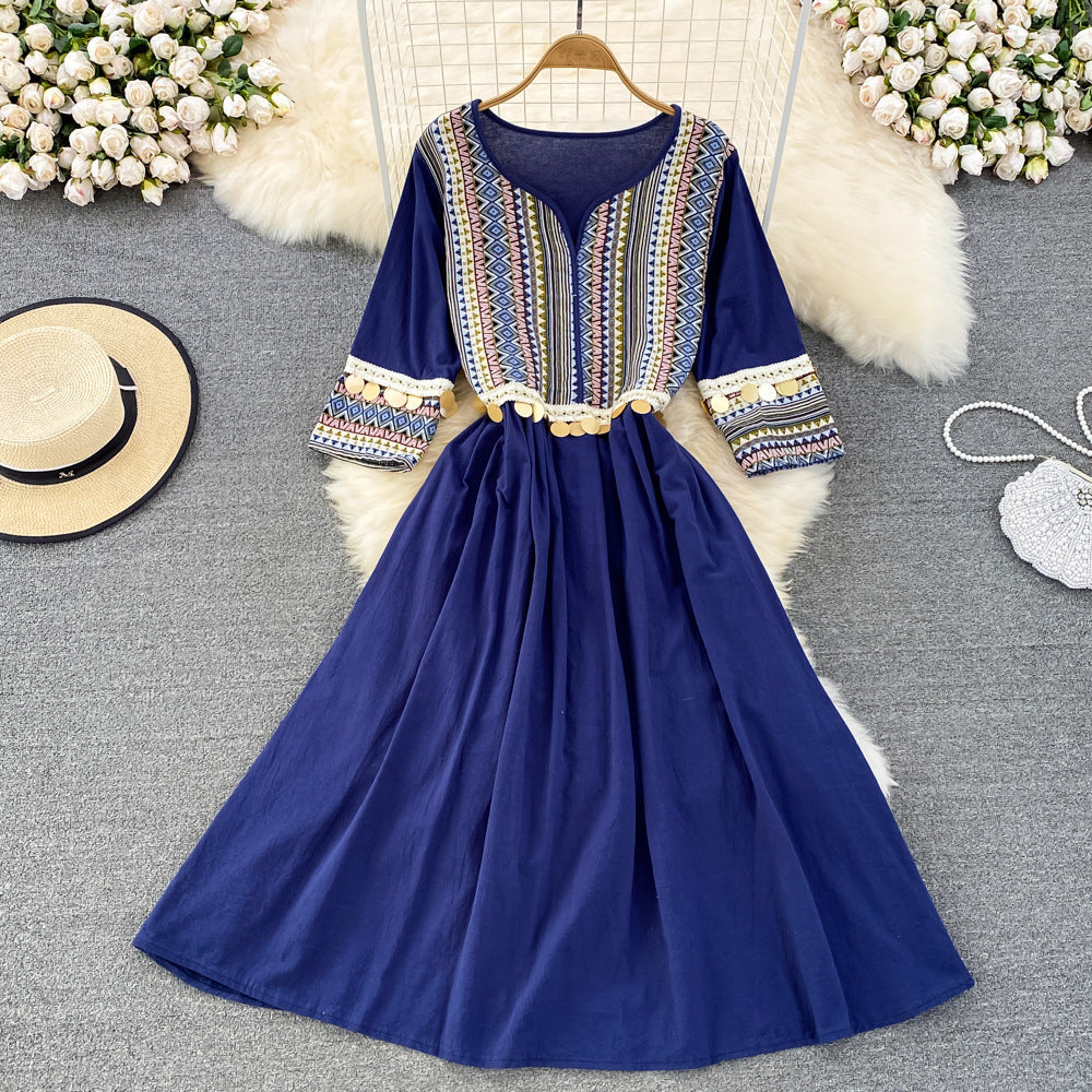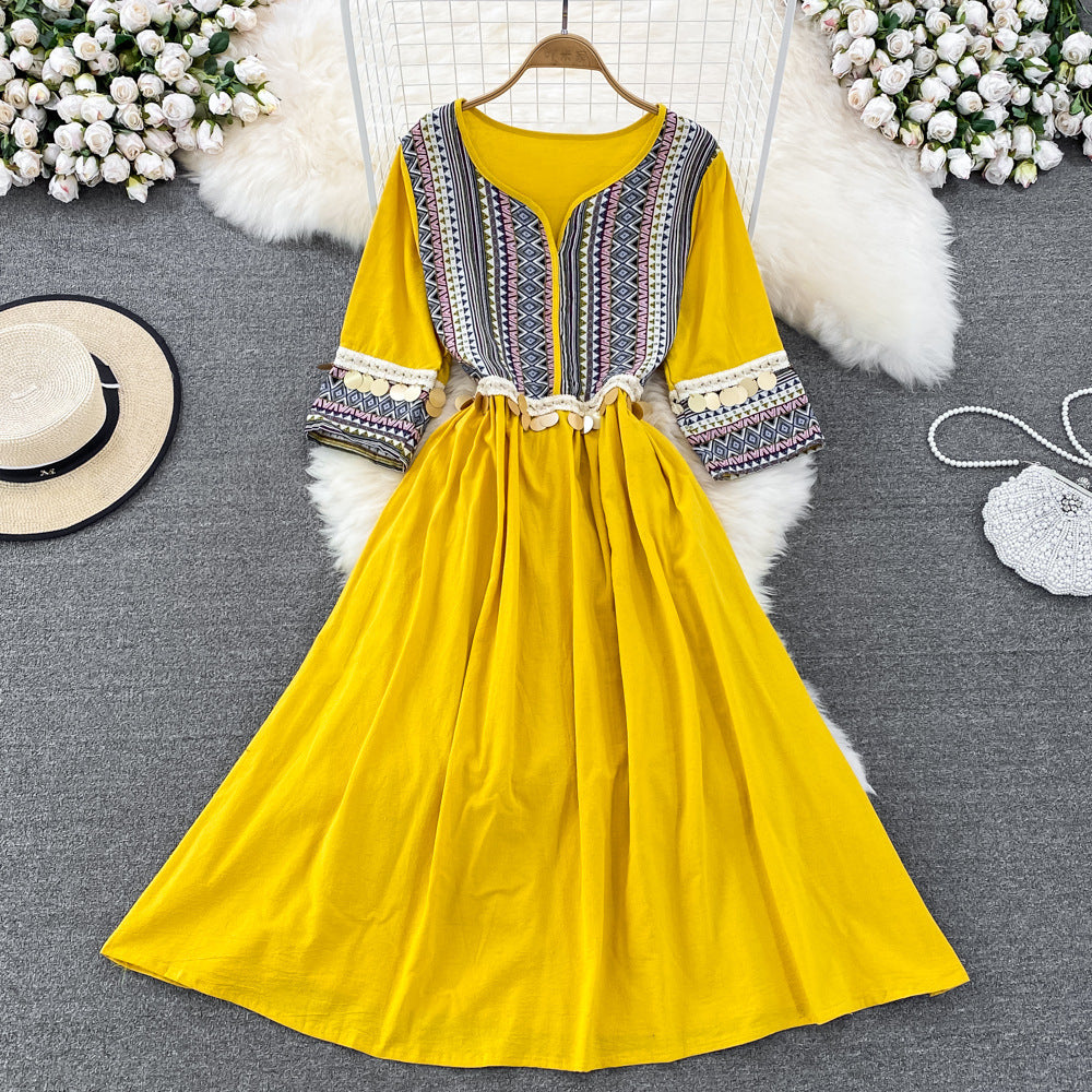Regular price $41.05 USDSale price $41.05 USD Regular priceUnit price perSale Sold outProduct information: Pattern: geometric pattern Color: apricot, peacock blue, pink, olive, Black Waist type: high waist Size: S,M,L,XL Skirt length: long skirt Style: pullover Sleeve type:...