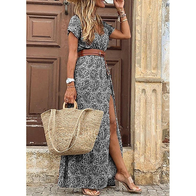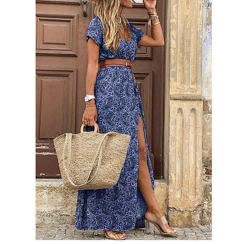 Regular price From $34.31 USDSale price From $34.31 USD Regular priceUnit price perSale Sold outProduct information: Process: Printing/Dyeing Skirt length: mid-length skirt Skirt type: large swing type Collar type: V-neck sleeve length: short sleeve Waist type: high waist Clothing placket:...