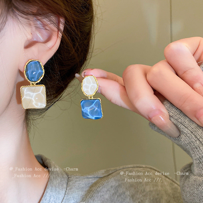 Silver Needle Irregular Square Earrings Fashion Earrings