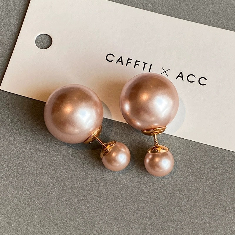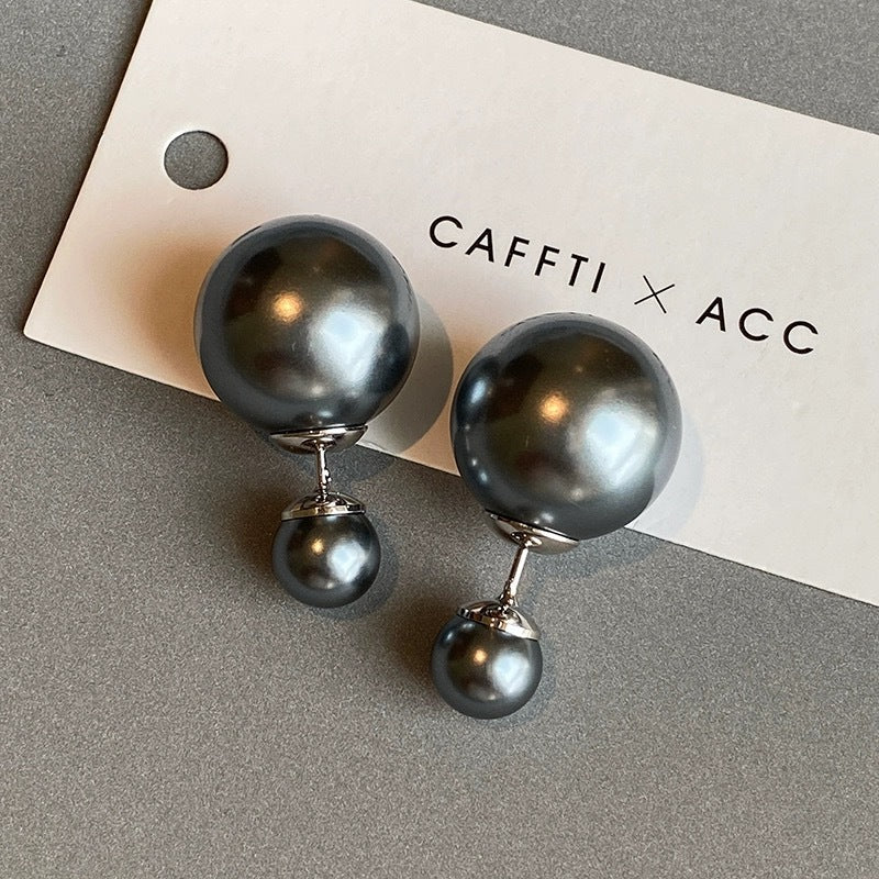 Silver Needle Really Many Heather Gray Australian White Big And Small Balls Two Sides Pearl Ear Studs