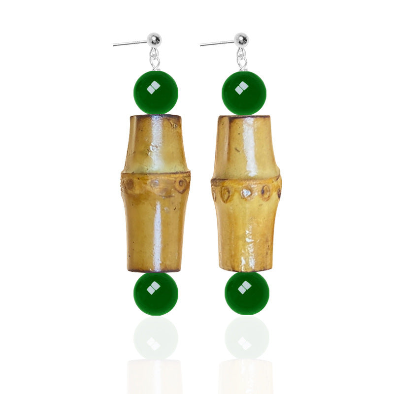 Silver Niche Design Earrings Ethnic Natural Bamboo Joint Female