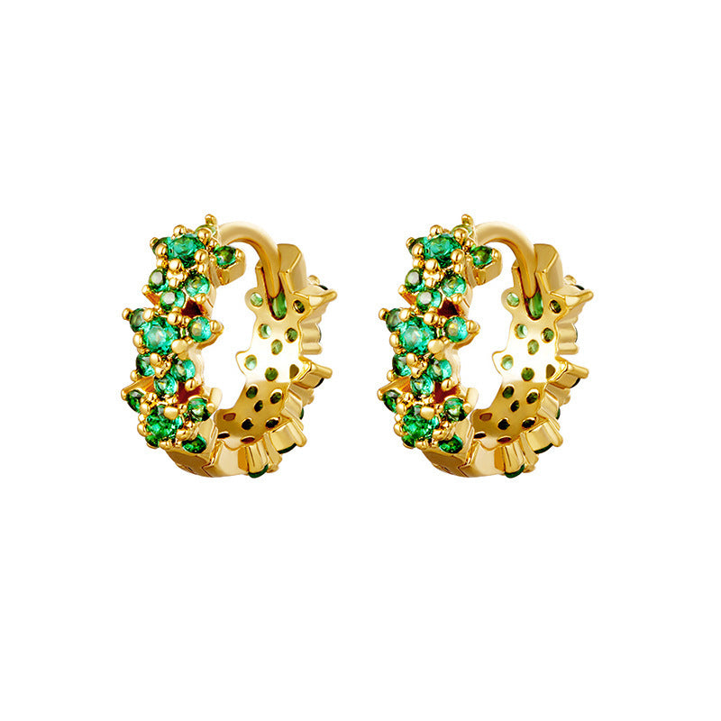 Silver Needle Simple Color Zircon Cute Plum Earrings