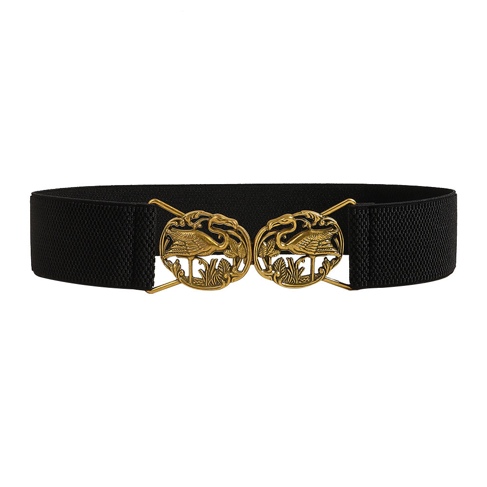 Simple Retro Elastic Belt Metal Hollow Buckle Red-crowned Crane Elastic Waist Elegant Female Fashion Accessories