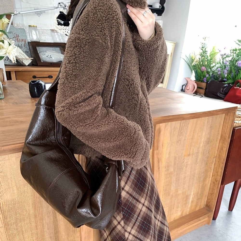 Simple Pleated Shoulder Bag Female Underarm Bag Commuter Tote