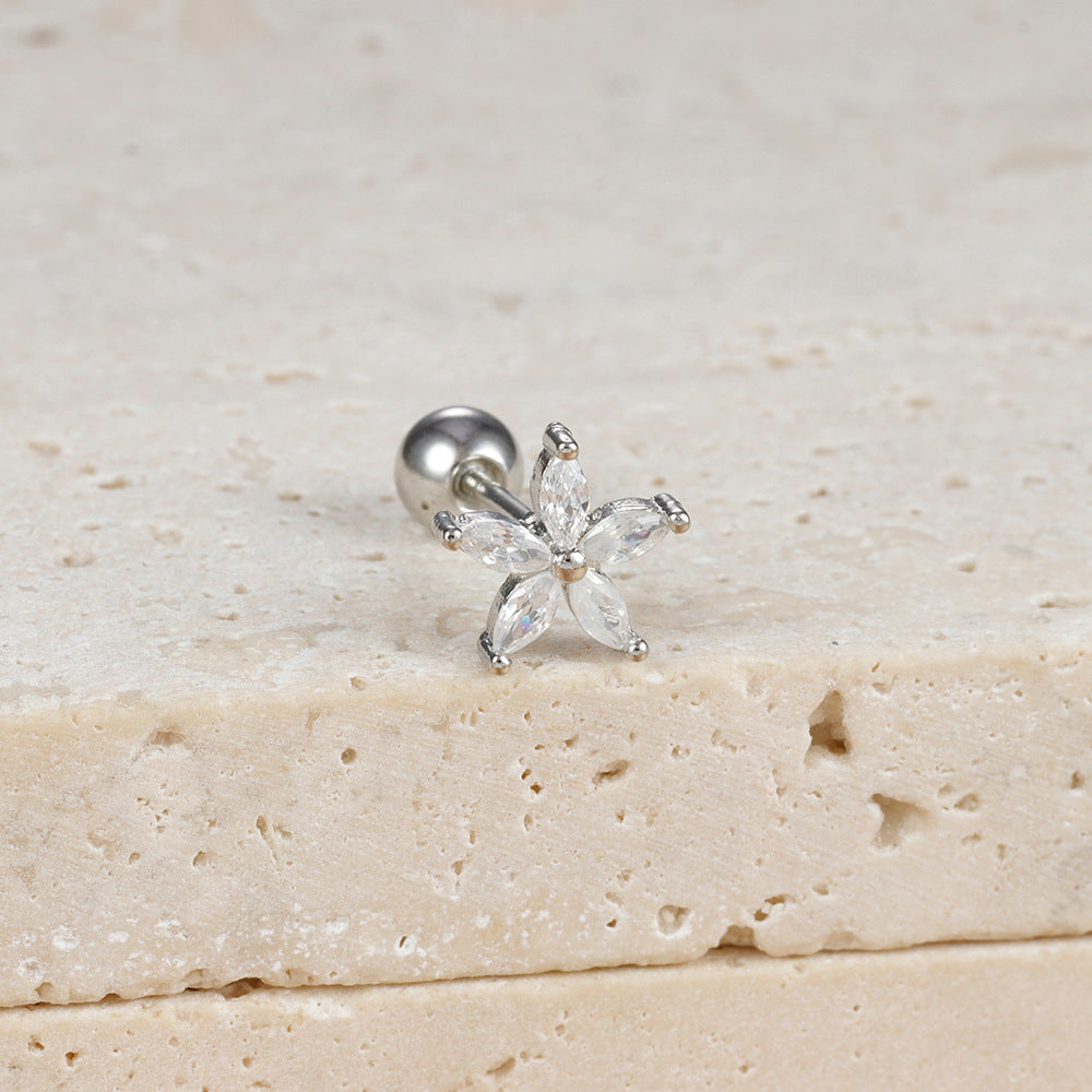 Simple Zircon Six-leaf Flower Pendant Earrings For Women