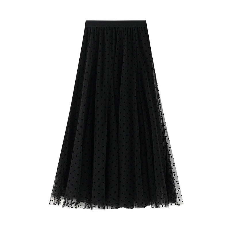 Slimming Cover Dot Mesh A- Line Fishtail Skirt