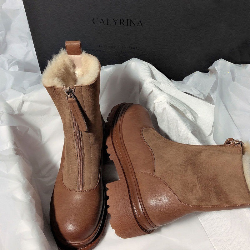 Soft Leather And Velvet Thick Snow Boots Female Insulated Cotton-padded Shoes