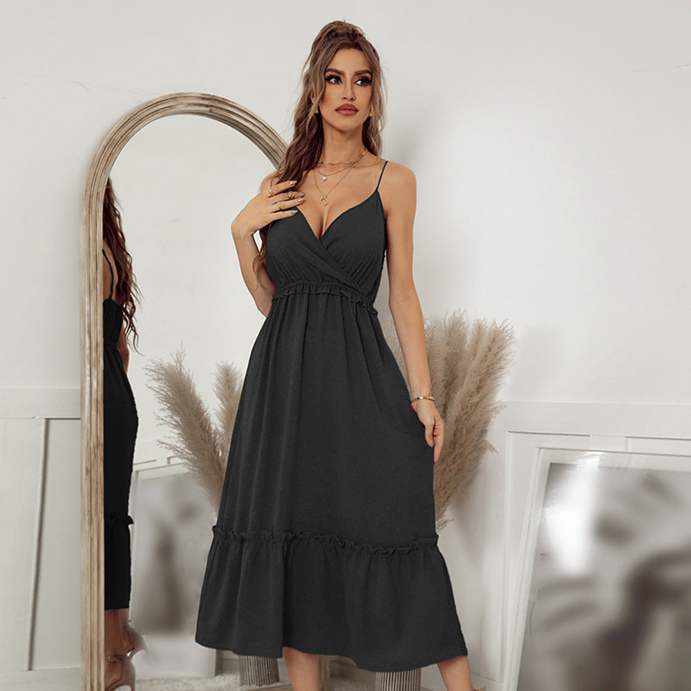 Solid Color Elegant Suspender Dress