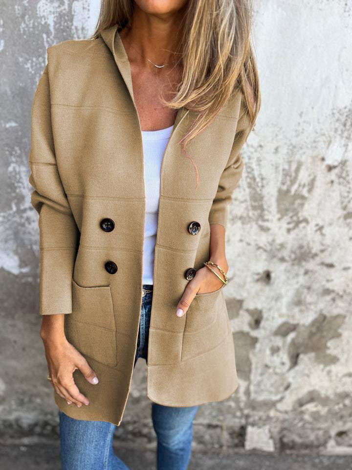 Solid Color Hooded Casual Button Trench Coat