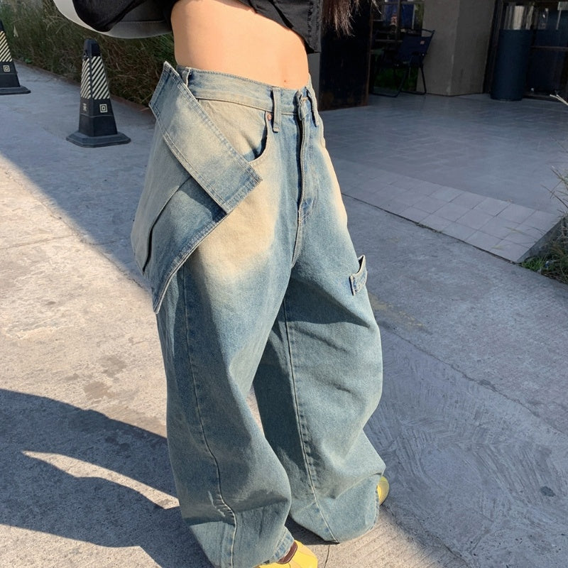 Spring Ins Versatile Retro Distressed Wide-leg Pants