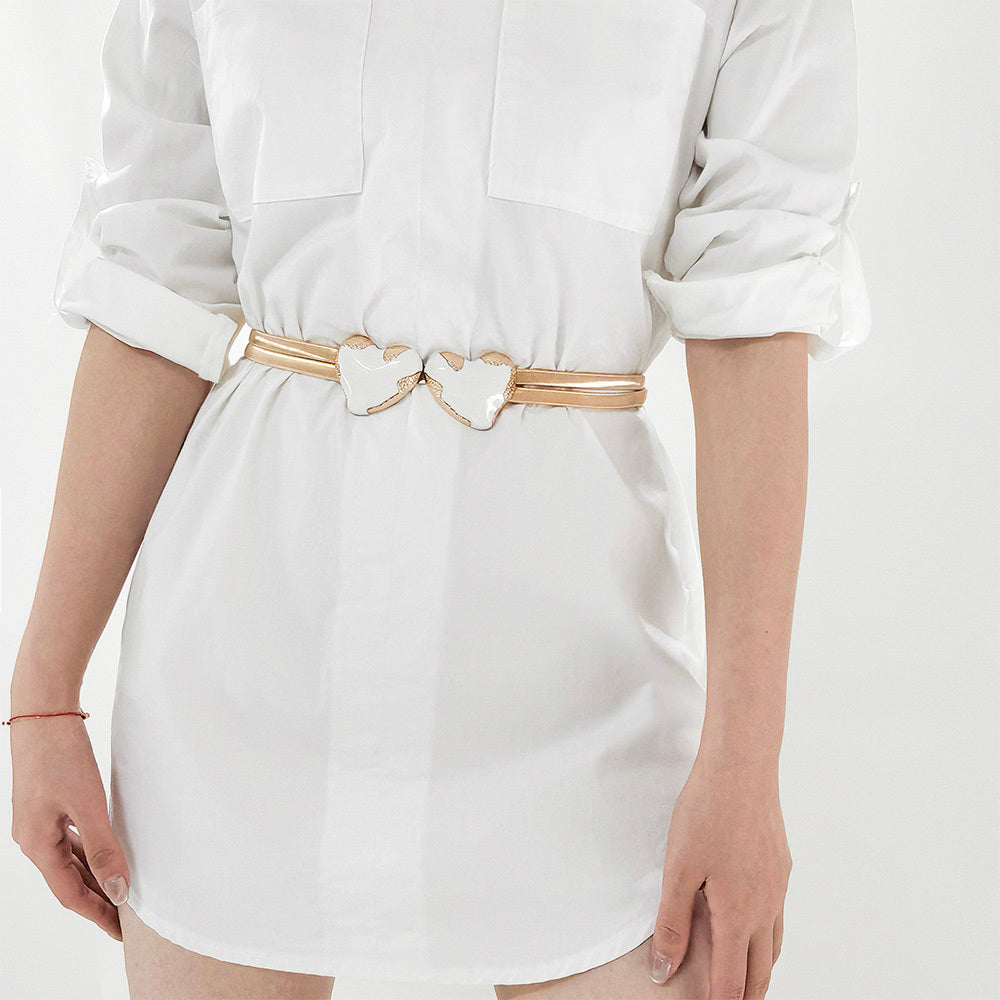 Stylish And Simple Women's Waist Chain Sweet Love Decoration Double Spring Elastic Chain Gold Skirt