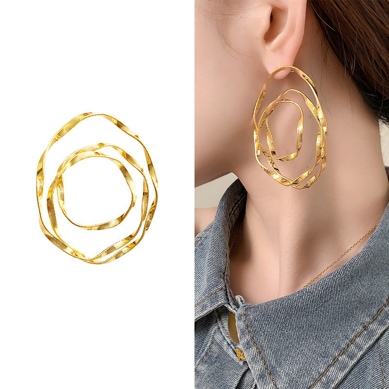 Style Exaggerated Big Circle Three-dimensional Twisted Personality Ear Studs Cold Style High Sense