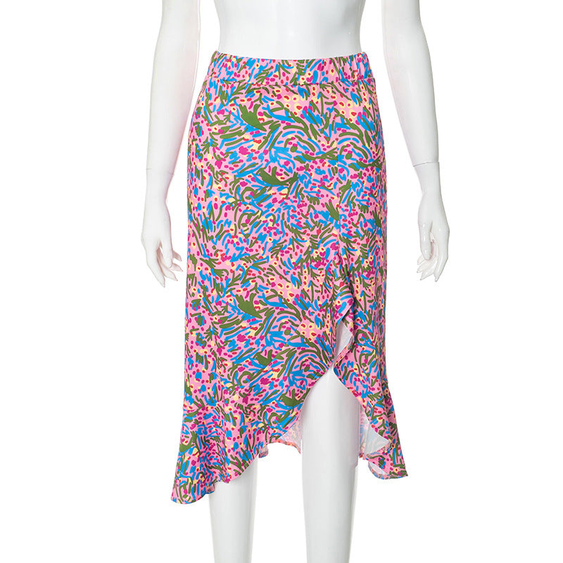 Elegant Graceful Printed Simple Style All-match High Waist Skirt Cross-border Niche Long Skirt
